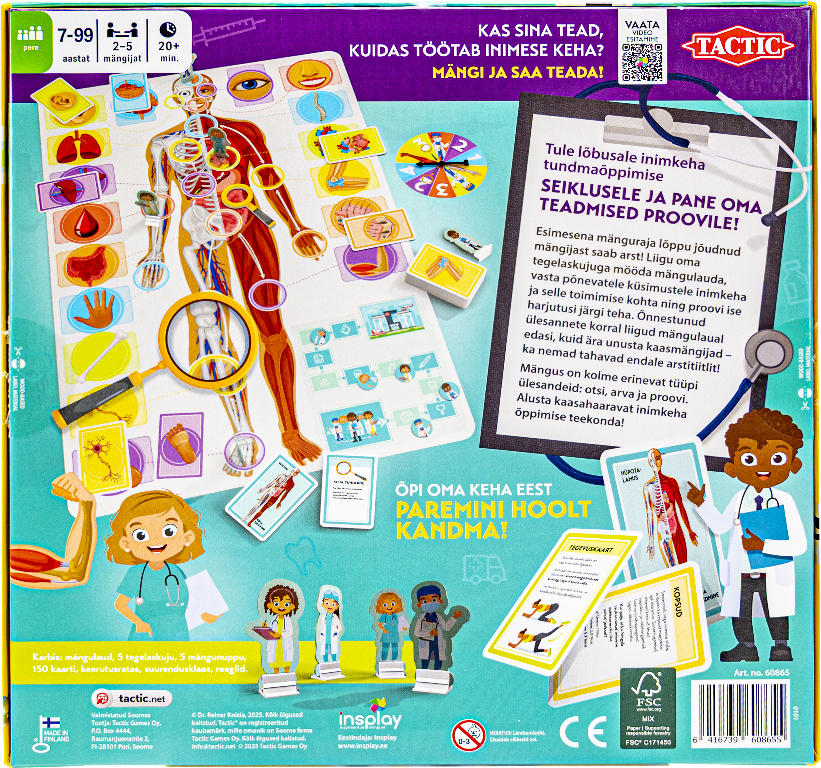 Esimesena mänguraja lõppu jõudnud mängijast saab arst! Liigu oma tegelaskujuga mööda mängulauda, vasta põnevatele küsimustele inimkeha ja selle toimimise kohta ning proovi ise harjutusi järgi teha. Õnnestunud ülesannete korral liigud mängulaual edasi, kuid ära unusta kaasmängijad – ka nemad tahavad endale arstitiitlit! Mängus on kolme erinevat tüüpi ülesandeid: otsi, arva ja proovi.
