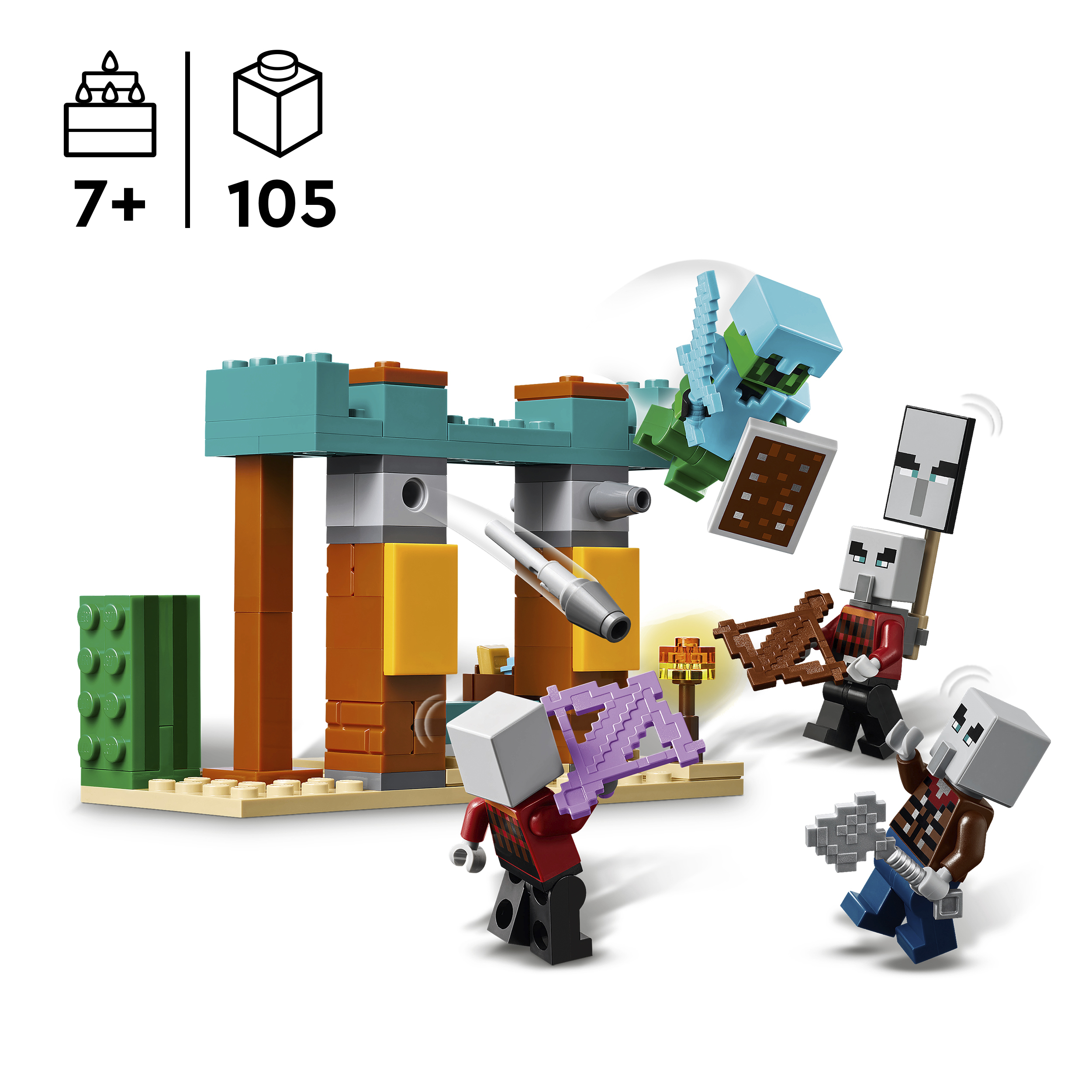 • LEGO® Minecrafti® kõrbemärul – Illageride kõrbepatrull on põnev laste mänguasi, mis äratab 7-aastaste ja vanemate poiste ja tüdrukute seas populaarse videomängu ellu