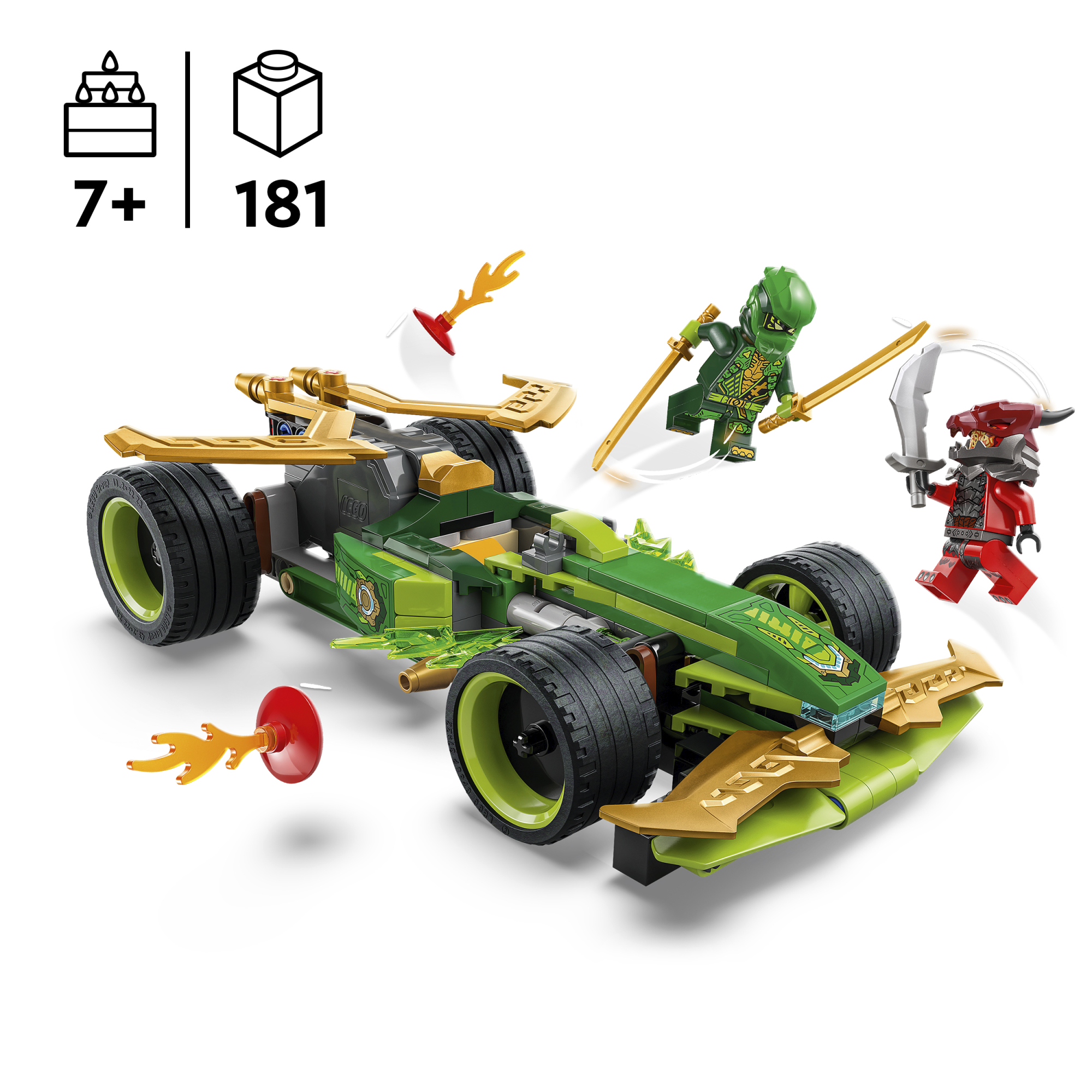 • Võidusõiduauto mänguasi – 7-aastased ja vanemad poisid ja tüdrukud saavad selle Lloydi tagasitõmmatava võidusõiduautoga mängida ülikiiret tegevust telesarja NINJAGO® Dragons Rising 3. hooajast