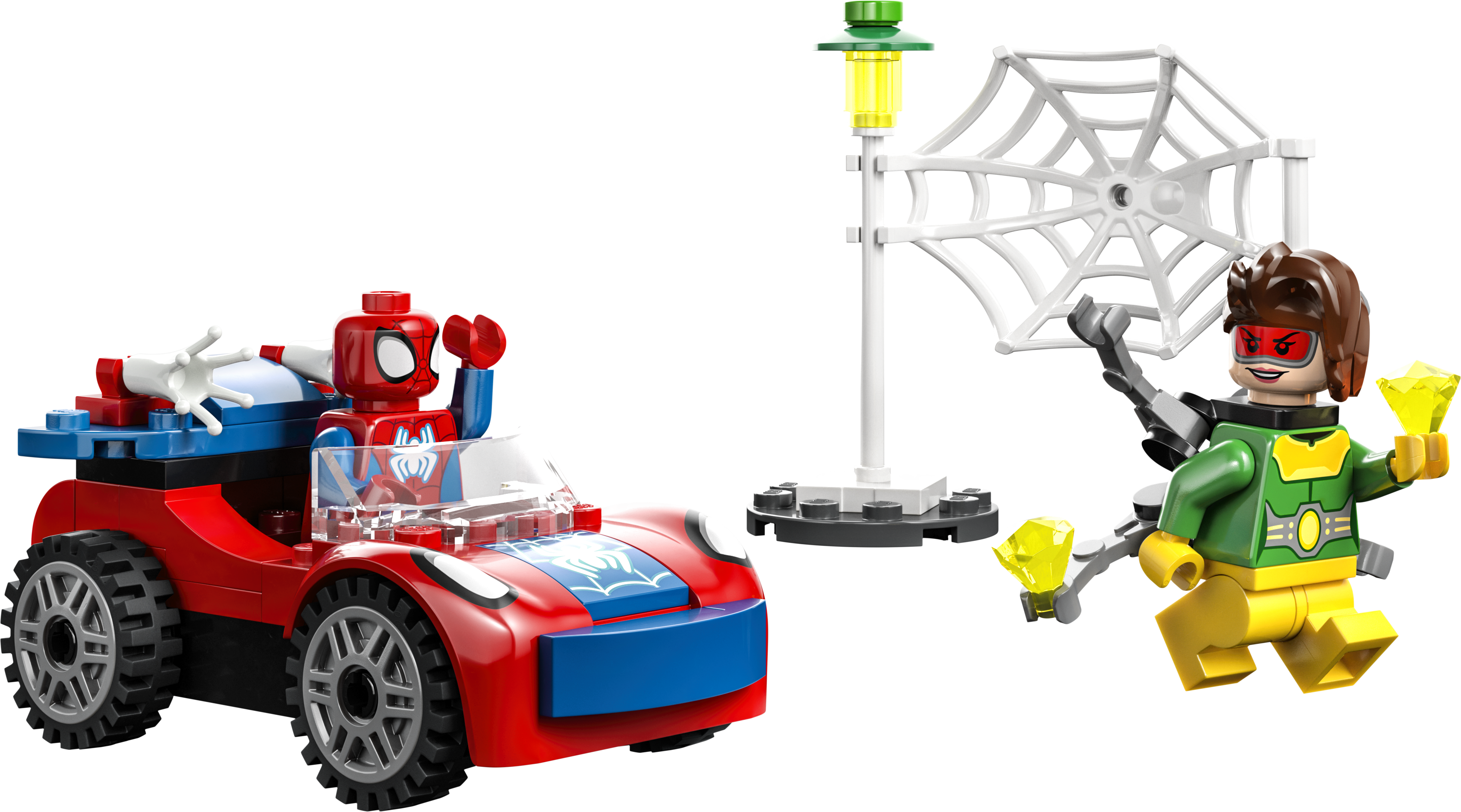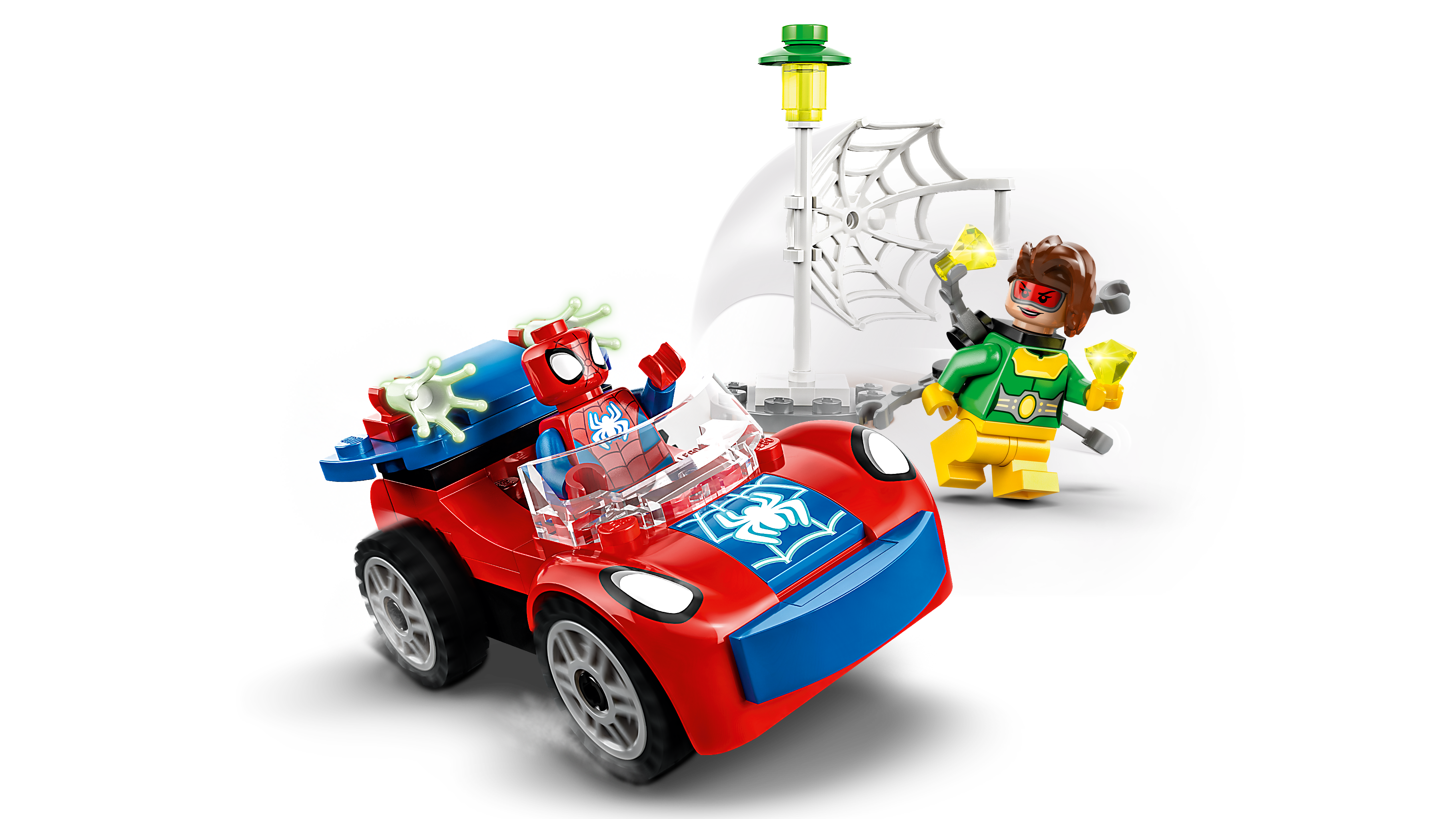 • Legendaarsed tegelaskujud – komplektis on Spidey ja Doc Ocki minifiguurid ja Spidey auto, millel on kaks pimedas helendavat võrguelementi ja autoraami põhiklots, mis julgustab algajaid ehitajaid