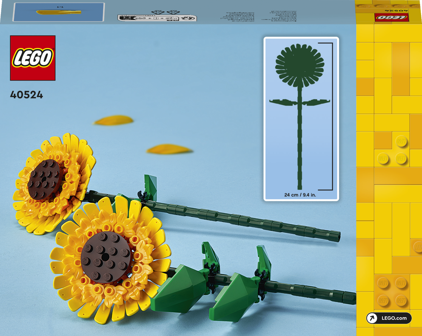 • Pane päevalilled vaatamiseks välja – loo värviküllase LEGO® päevalillede (40524) ehituskomplekti abil väljapanekuese, mis sobib igasse tuppa. Komplektis on kaks päevalilleõit, millel on kohandatavad rohelised varred ja lehed