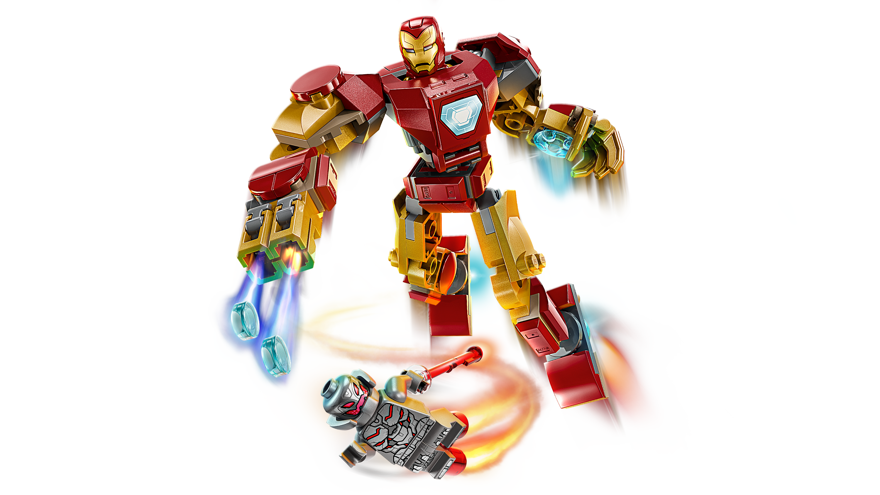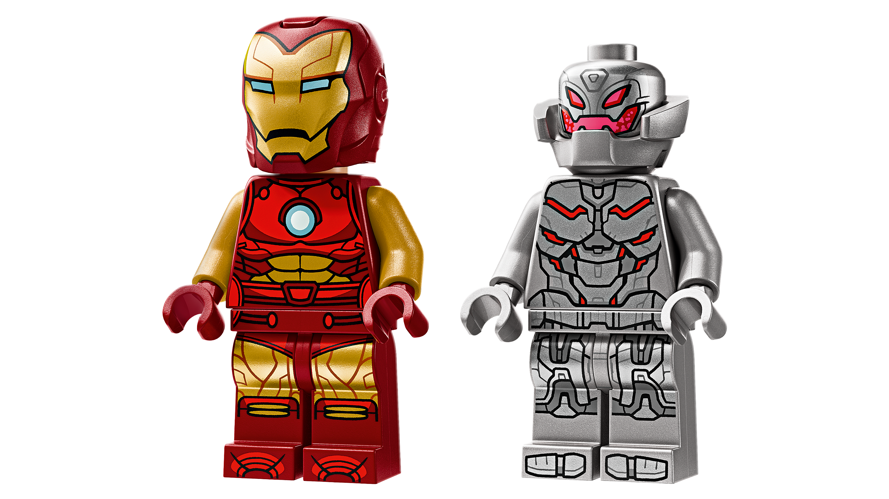 • LEGO® Marveli minifiguurid – komplektis on 2 minifiguuri: avatava visiiriga kiivri ja pööratava peaga Iron Man, kellel on erinevad näoilmed, ning Ultron, kes hoiab laserkiireelementi