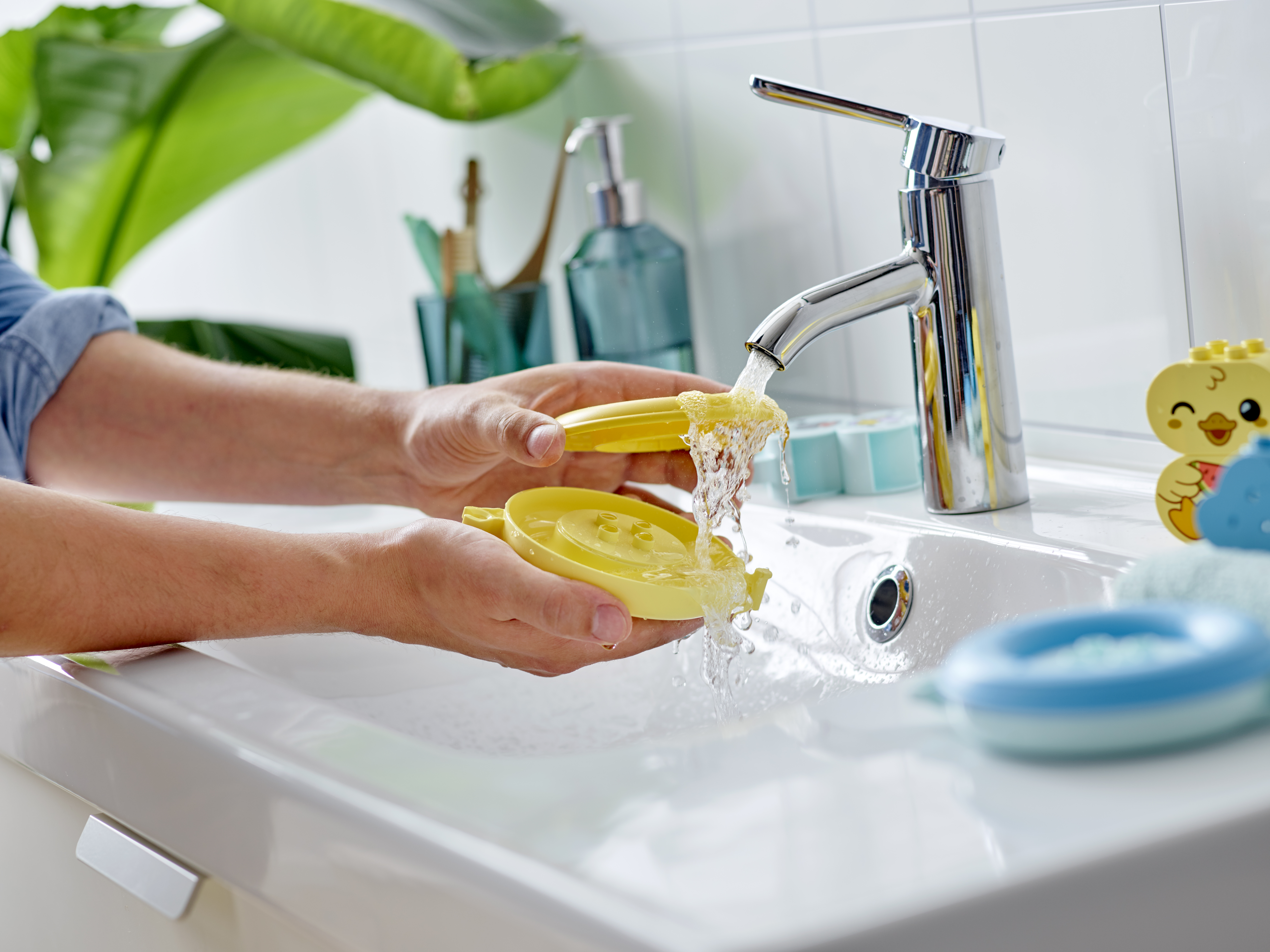 Kokkupandavad loomad – mängukomplektis on jõehobu, part ja jääkaru, vihmapilv ning kolm ujumisrõngast, mille saab kiireks ja lihtsaks puhastamiseks lahti teha
