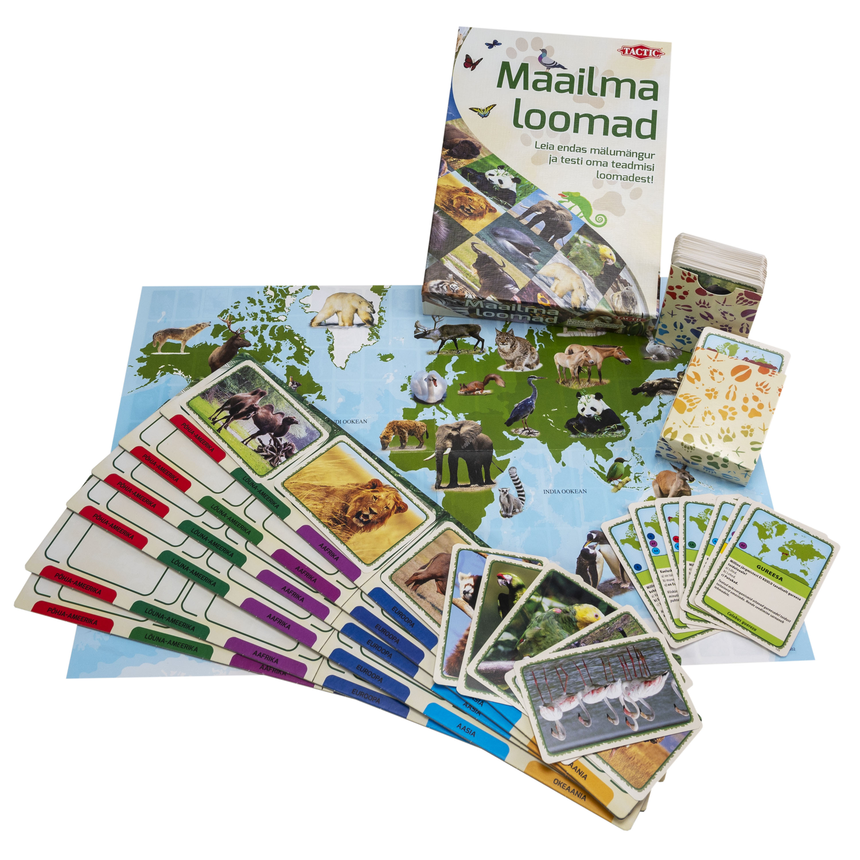 Reisi ümber maailma, tunne loomi ja vasta küsimustele. Võid mängida kas lihtsamat või proovida keerukamat mänguversiooni, et oma teadmisi proovile panna. Mängija, kes asetab kõige rohkem loomakaarte õigele maailmajaole, on võitja! 200 huvitavat looma seitsmest erinevast maailmajaost!