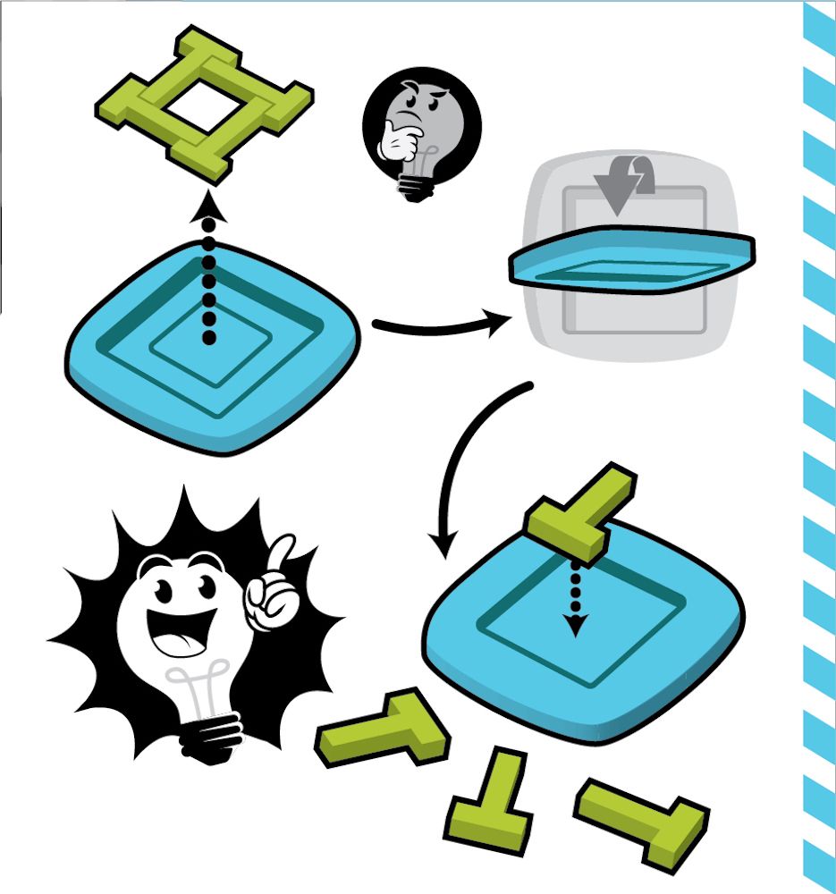 Võtke neli T kuju karbist välja ja proovige need sobitada väiksemasse raami tagasi.