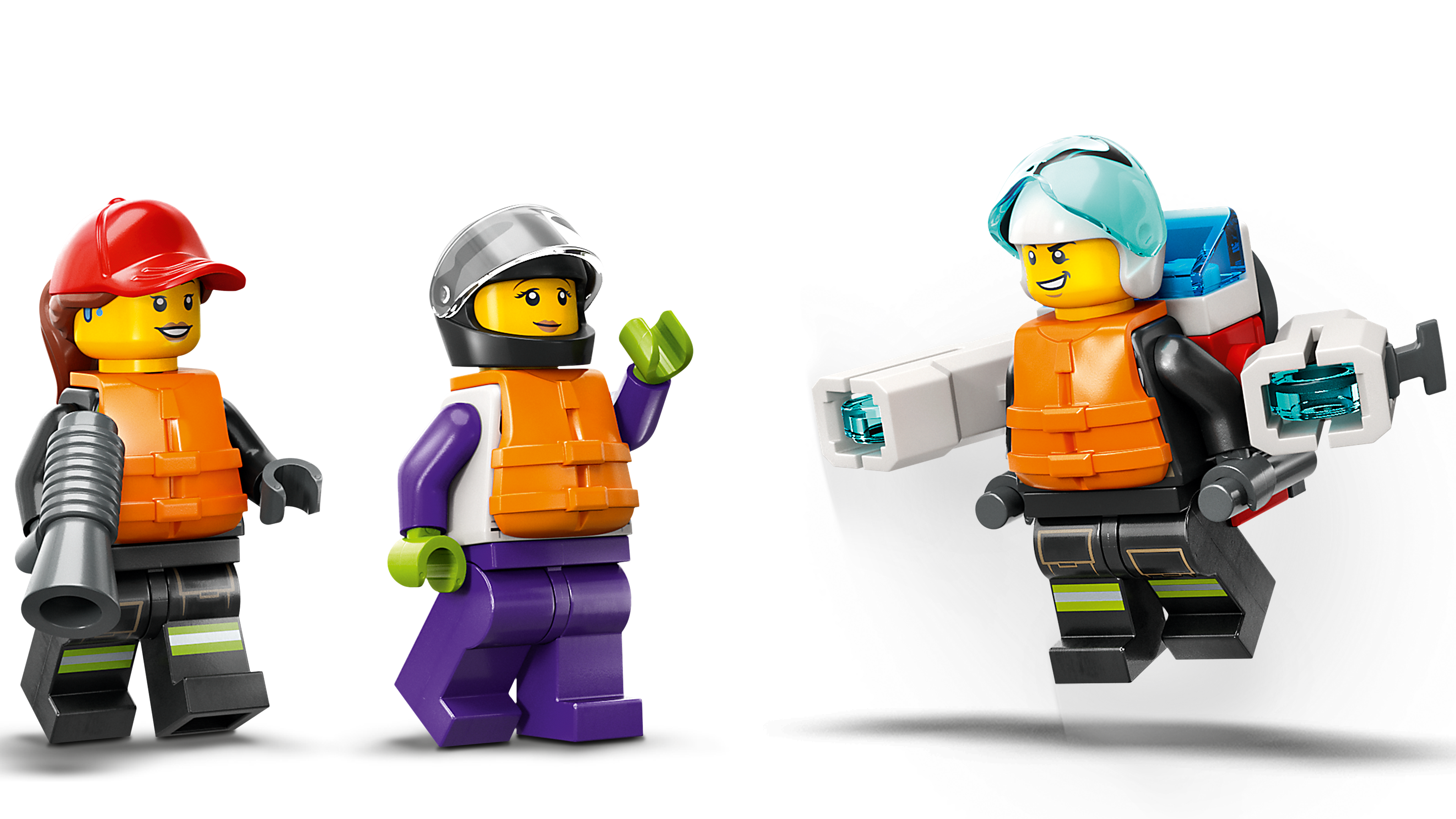 • Detailid ja funktsioonid – lapsed saavad tuletõrjepaadi kustutist ja tuletõrje-reaktiivseadmest välja lasta LEGO® vee-elemente