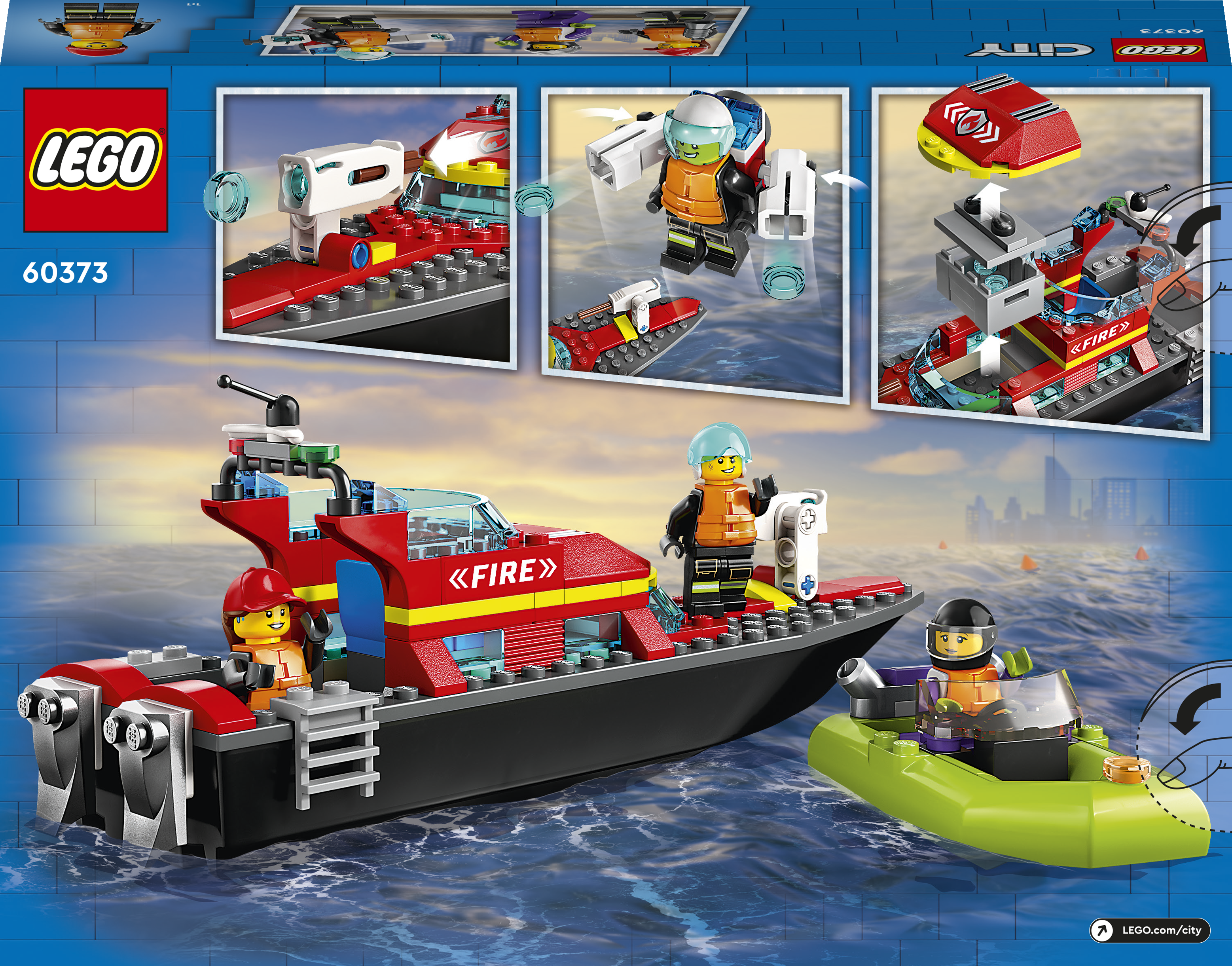 • Mängutuletõrjepaat – selles LEGO® City tuletõrjepaadi (60373) mängukomplekti seltsis ootab sind tundidepikkune seikluslik tuletõrjeteemaline mäng