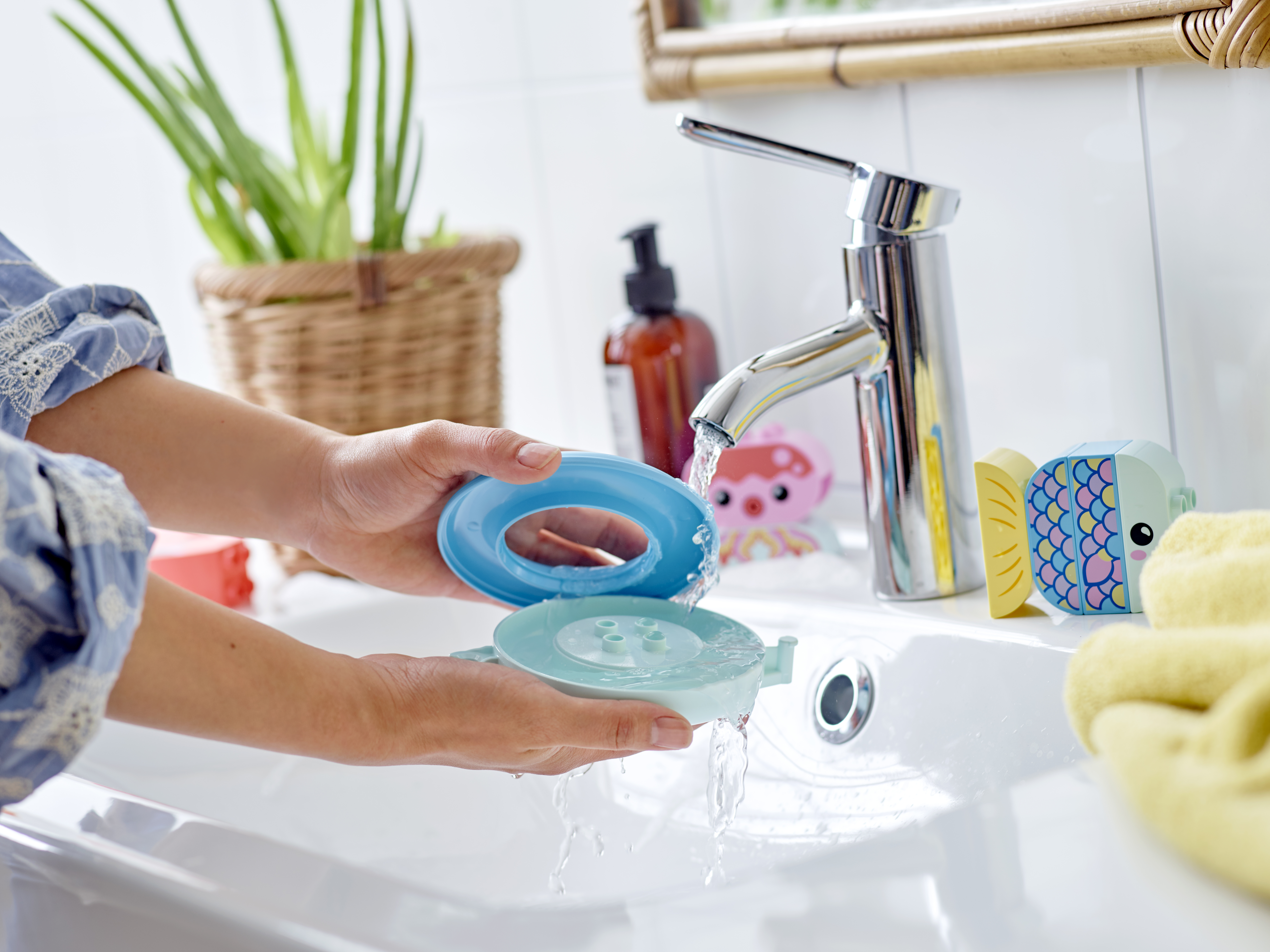 Ehita, mängi ja õpi – mängukomplektis on kala, kaheksajalg, lõvi ja flamingo. Ujuv saar on eraldatav kaheks eraldi ujuvaks osaks, mille alumine osa sobib mängimiseks ka väljaspool vanni