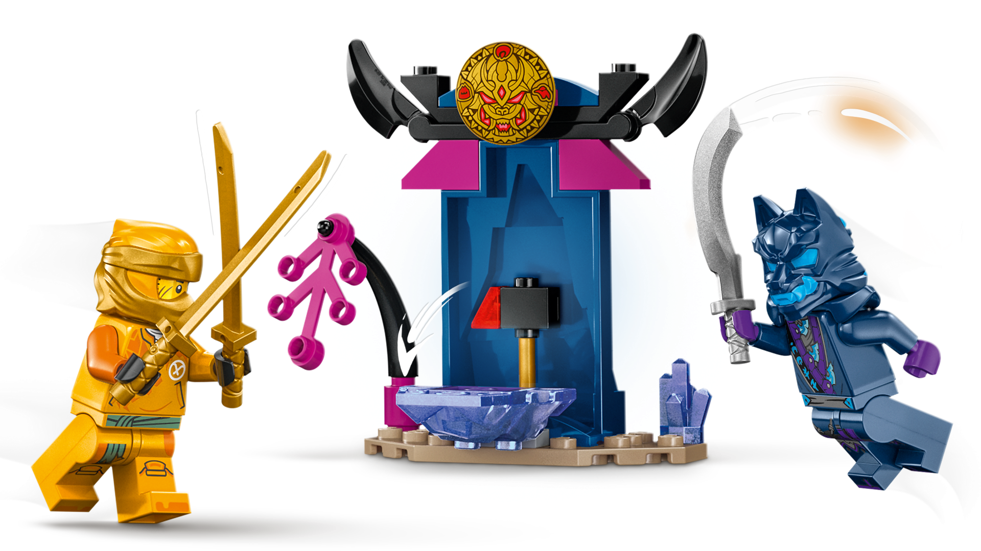 • 2 LEGO® NINJAGO® minifiguuri – selles ninjamängukomplektis on Arini minifiguur, mis on varustatud katana mõõga tarvikuga, et lapsed saaksid mängida rollimänge Hundimaskis sõdalasega, kellel on samuti mõõk