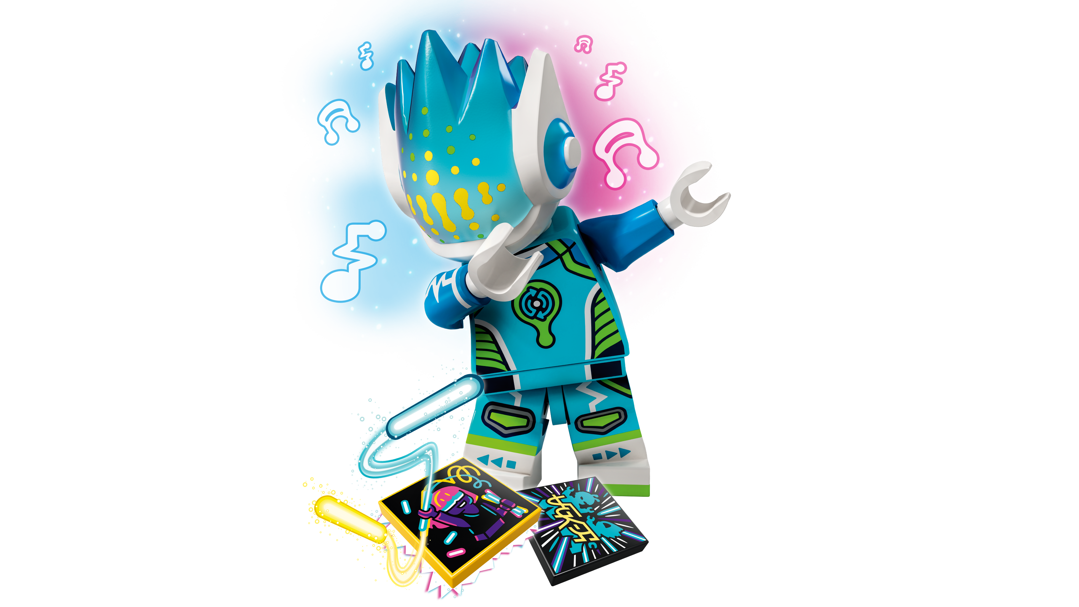 Tutvusta muusikavideote loomise maailma lastele, kes armastavad tantsida ja esineda. See LEGO® VIDIYO™ Alien DJ BeatBox (43104) muudab iga mängukorra põnevaks. Laadi alla tasuta rakendus, et skannida muusikapõhist minifiguuri ja tuua nähtavale tulnukast DJ lahe lavapersoon. Seejärel skanni BeatBite, et avada eriefekte, ülesandeid ja muud, kui lapsed produtseerivad oma kordumatut muusikavideot, mida saab teiste loojatega jagada lapsesõbralikus suhtluskanalis. Kaasaskantav, et saaksid mängida ka liikvel olles Lastel on LEGO osade abil põnev BeatBoxi kujundada. Nad saavad valida DJ-puldi, UFO või raketiga kujunduse vahel või mõelda kujunduse ise välja. BeatBox käib kokku ja selle sisse mahuvad BeatBitid ning minifiguur, mistõttu sobib see just liikvel olles mängimiseks. Loo muusikaelamusi LEGO VIDIYO pakub turvalist seltskonnamänguelamust, aidates lastel saada oma muusikavideote lavastajateks, produtsentideks ja tähtedeks. Vaata, kuidas nende loovus areneb, kui nad produtseerivad videoid, mis sisaldavad muusikalisi kollaaže, vahvaid tegelasi, laule, tantsuliigutusi ja hämmastavaid efekte.