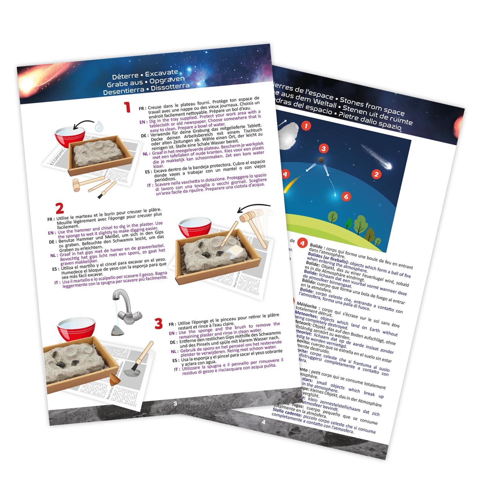 Kasuta kaasasolevaid tööriistu, et kaevata ja vaadelda kosmoses viite kivi, sealhulgas tõelist kivimeteoriiti ja tektiite.