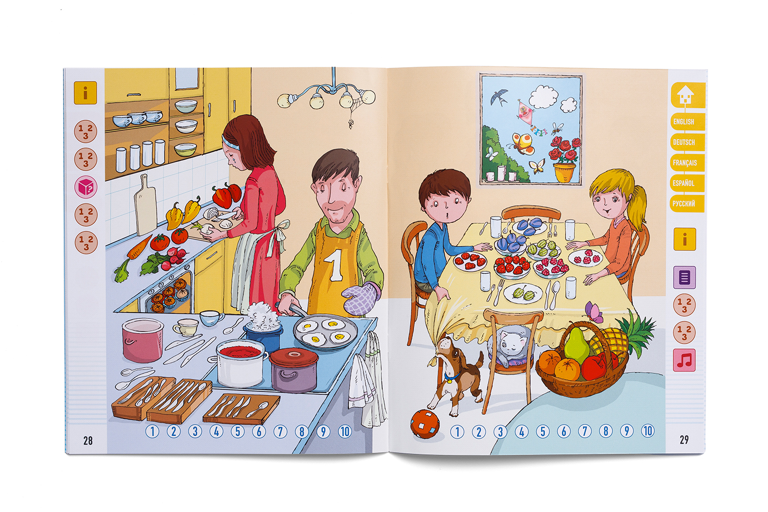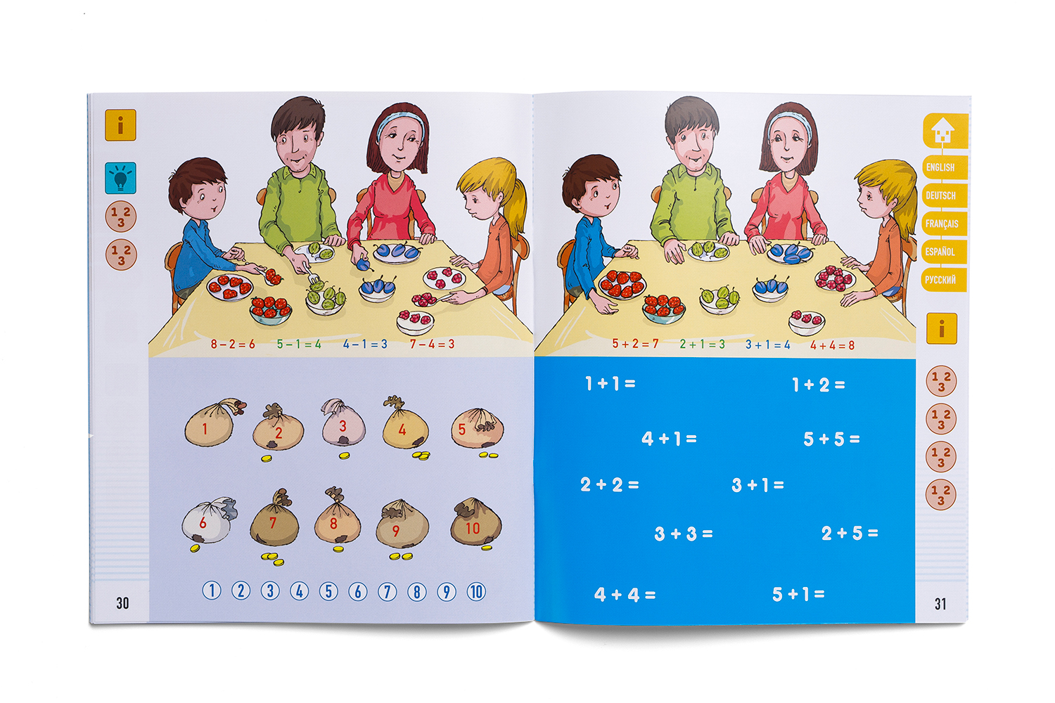 Lapsed saavad õppida lisaks kümneni lugemisele erinevate esemete arve võrdlema. Vanemad lapsed saavad õppida liitmist ja lahutamist. Raamatus julgustatakse lapsi kaasa laulma ka 9 rõõmsameelse ingliskeelse lauluga numbritest. 700 ülesannet ja küsimust muudavad raamatu ainulaadseks.